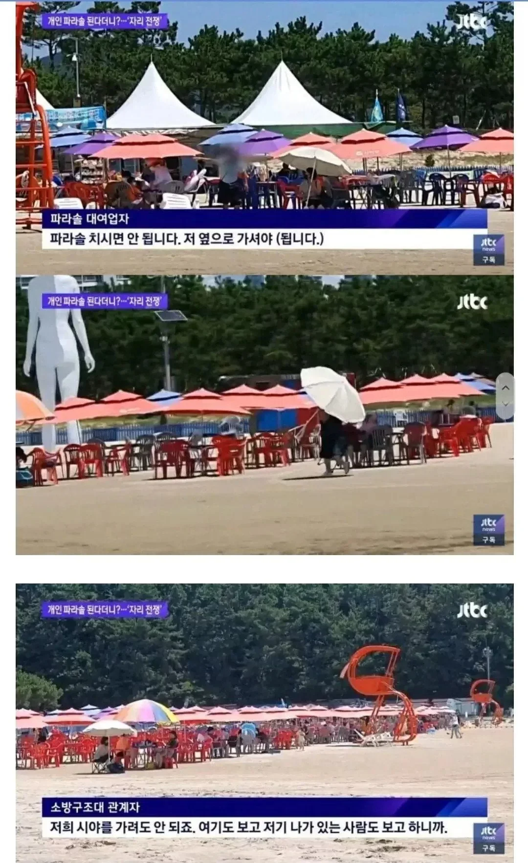 해수욕장에서의 여름이 시작되자, 모든 사람의 관심이 '자리 전쟁'으로 쏠리고 있습니다. 싱글벙글 해수욕장에서는 개인 파라솔 사용이 허용된다던 약속이 무색하게, 현장에서는 여전히 자리를 차지하기 위한 치열한 경쟁이 벌어지고 있습니다. 박모씨는 개인적으로 준비한 선베드를 설치하려고 했지만, 현지 상인으로 보이는 사람들이 “자기 영업 방해된다”며 강하게 반대하고 나섰습니다.