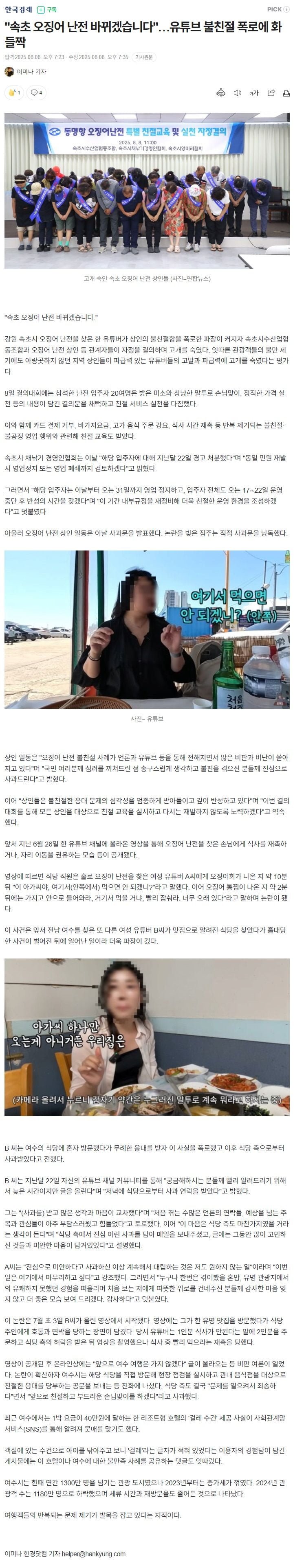 이번 사건은 관광 명소 속초에서 고객을 무시하는 시대가 끝났음을 알리는 신호탄이 될지 주목됩니다. 변화를 위해 발벗고 나선 상인들의 모습은 과연 진정으로 고객을 대하는 친절한 모습으로 돌아설 수 있을지, 기대와 우려가 교차하고 있습니다!