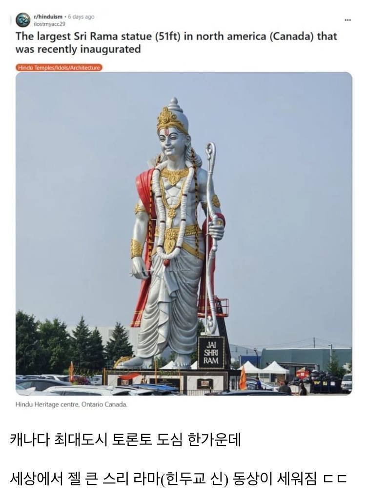캐나다에서 신기한 일이 발생했습니다! 최근 북미에서 가장 큰 스리 라마 동상(무려 15미터, 약 51피트)이 온타리오 주의 힌두 유산 센터에 세워졌습니다. 이는 캐나다의 힌두교 문화가 급속도로 성장하고 있다는 것을 증명하는 상징적인 사건입니다. 이 기념비적인 개막식은 많은 사람들의 관심을 끌며, ‘JAI SHRI RAM’이라는 구호가 도심 한가운데 울려 퍼졌습니다.