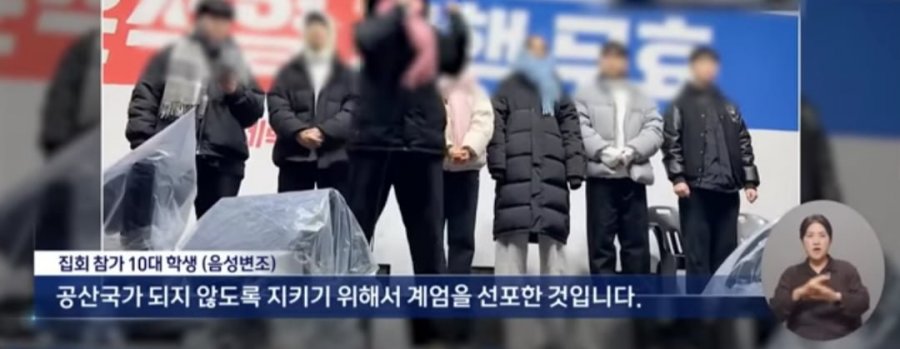 또한, 지난 1월 서울 한남동의 한 10대 학생이 "계엄선포가 정당하다"는 위험한 주장을 펼치며 집회에 참석했다는 사실이 알려져 사회를 놀라게 하고 있다. 해당 학생은 "공산국가가 되지 않도록 지키기 위해서 계엄이 필요하다"고 목소리를 높였다.