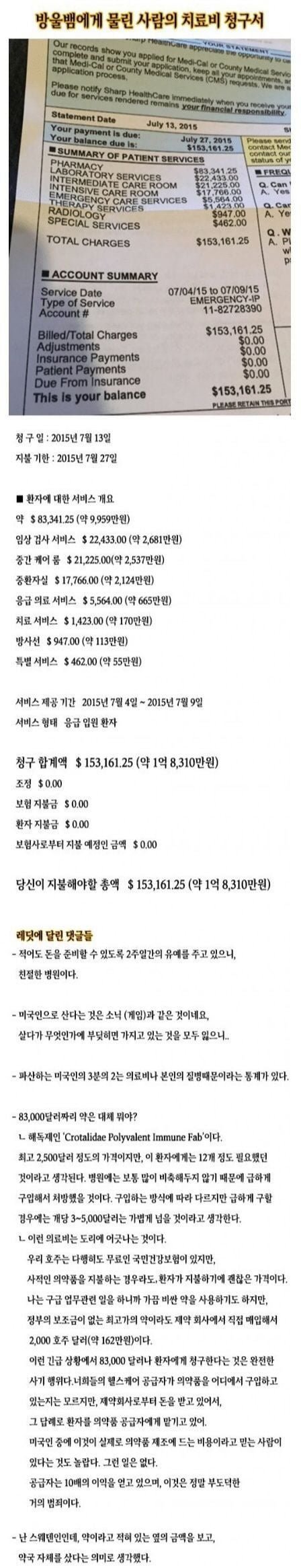 방울뱀에 물린 사람 치료비 청구서 ㄷㄷ.jpg
