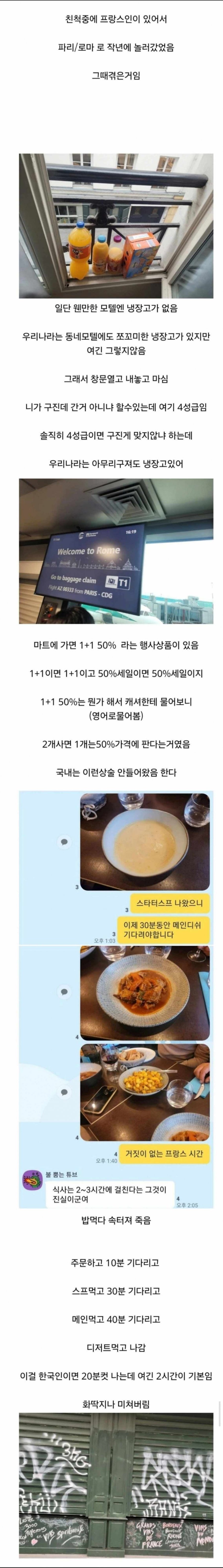 작년에 파리와 로마를 여행했던 한국인이 겪은 경악스러운 에피소드가 공개됐다! 그가 경험한 소식은 다름 아닌, 유럽 여행의 비극적 진실이다. 프랑스 친척이 있는 그는 4성급 호텔에 묵었지만, 모텔 수준의 불편함에 경악했다! 웬만한 모텔에도 꼭 있는 냉장고가 없는 곳에서 불가능한 상황에 직면하게 된다. 너무나도 황당한 나머지, 그는 창문을 열고 음료수를 밖에 내놓아야만 했다!