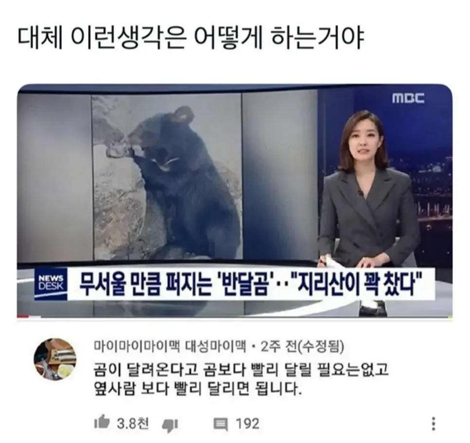 최근 대중의 관심을 한 몸에 받고 있는 '반달곰'이 지리산에서 무서운 속도로 그 세력을 확장하고 있다는 소식이 전해졌습니다. MBC 뉴스 데스크는 "곰이 달려온다!"는 소식으로 시민들을 놀라게 하고 있습니다. 사람들은 곰보다 빨리 달릴 필요는 없지만, 최소한 옆사람보다 빠르게 도망가야 한다는 기괴한 조언을 듣고 더욱 두려움에 떨고 있습니다.