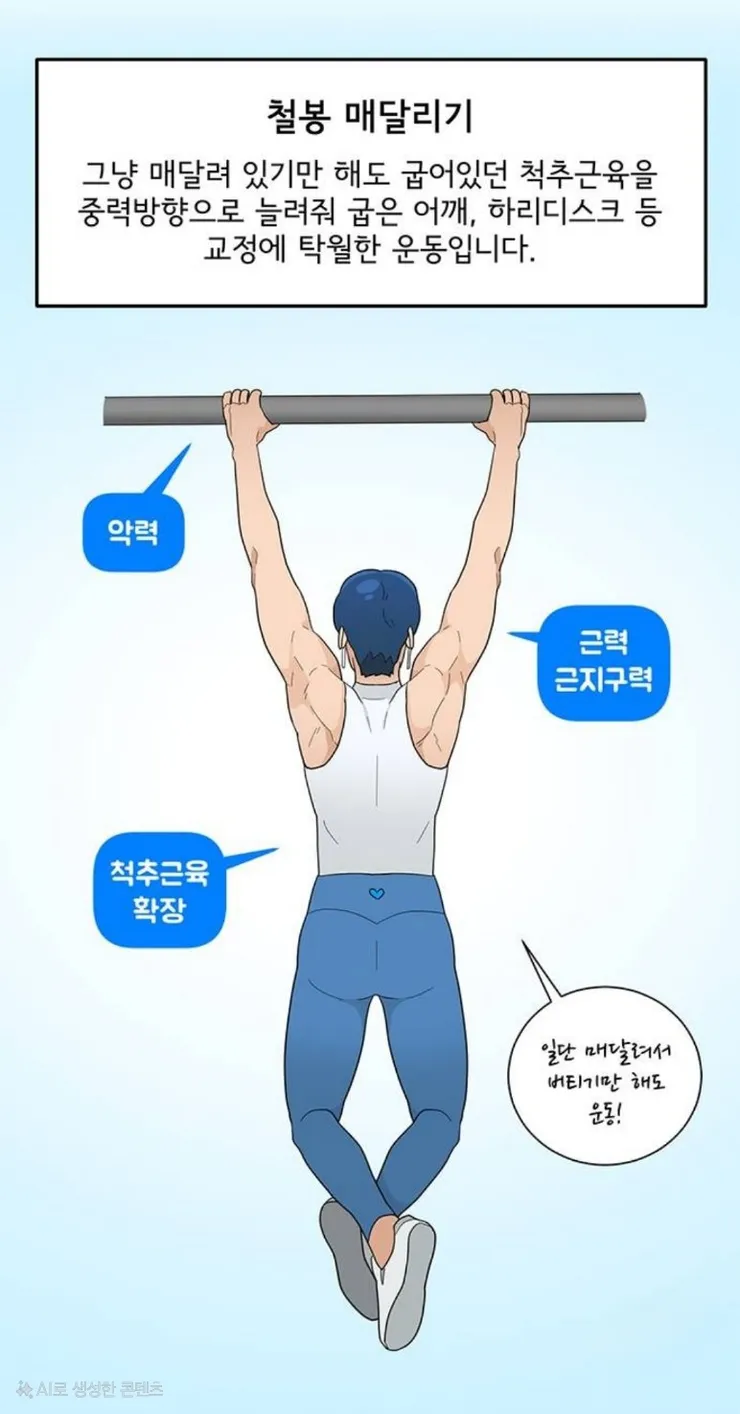 그래서 길가다 어디 철봉 보이면 남들 눈치보지 말고 60초만 매달리라고...