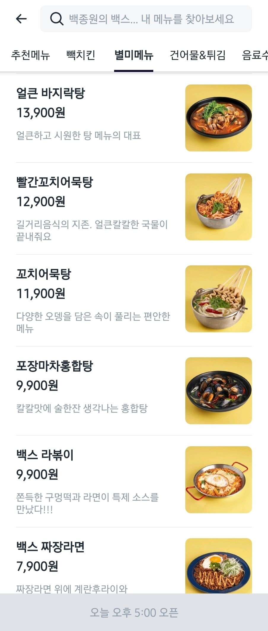 얼큰 바지락탕 12000원 -> 배달시 13900원