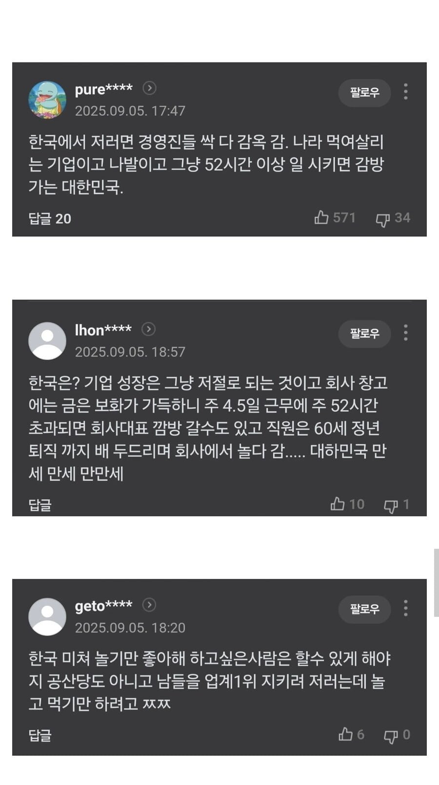 하지만 한국의 경영 환경과 비교하면 이 상황은 전혀 다른 양상이다. 한국에서는 주 52시간 근무를 초과하면 경영진이 감옥에 가는 극단적인 상황이 발생한다는 이론이 제기되며, 이에 따라 한국 기업들은 주 4.5일 근무 체제를 유지하고, 노동자들은 정년 퇴직까지 여유롭게 일한다는 아이러니한 상황에 처해 있다.