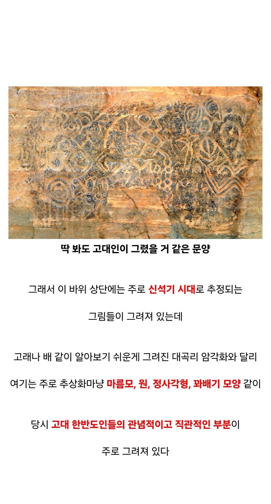 반구의 암각화는 신석기 시대부터 이어진 고대 한반도인들이 남긴 놀라운 벽화들로, 4000년이라는 세월의 흔적을 고스란히 담고 있다. 특히 주목할 점은 울주 천전리 암각화로, 이곳은 단순한 고대 암각화가 아니라, 고대인부터 현대 한국인까지의 다양한 기록이 남아 있는 특별한 장소다. 그야말로 전 인류에게 중요한 연결 고리를 제공하는 곳이라 할 수 있다.