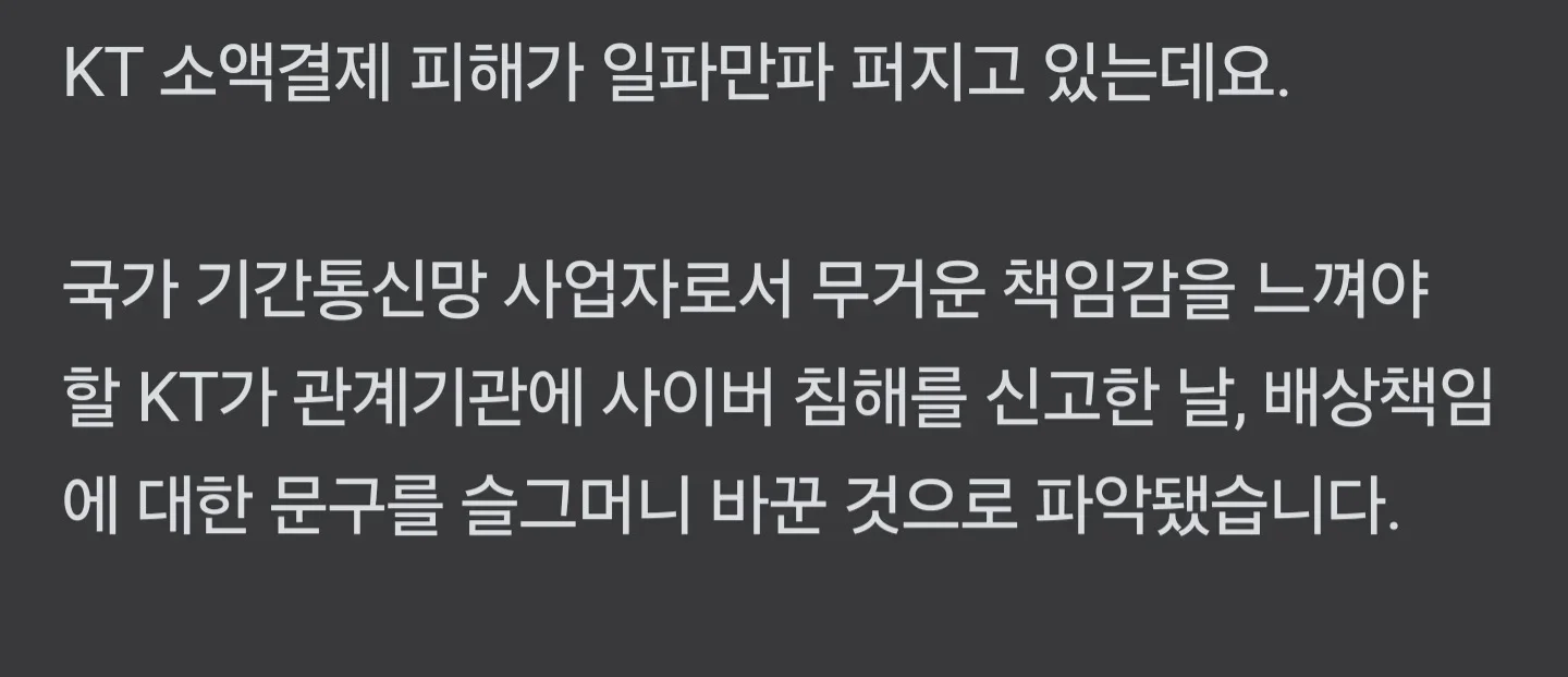 KT가 독특한 방식으로 피해 신고일에 배상 책임 관련 규정을 변경하였다는 뉴스가 전해졌다. 충격적인 사건이 아닐 수 없다! 사건 발생일에 맞춰 배상 내용이 뒤바뀐 것으로 확인된 KT는 전자서명 인증 업무의 규정을 수정했다는 보도가 나왔다.