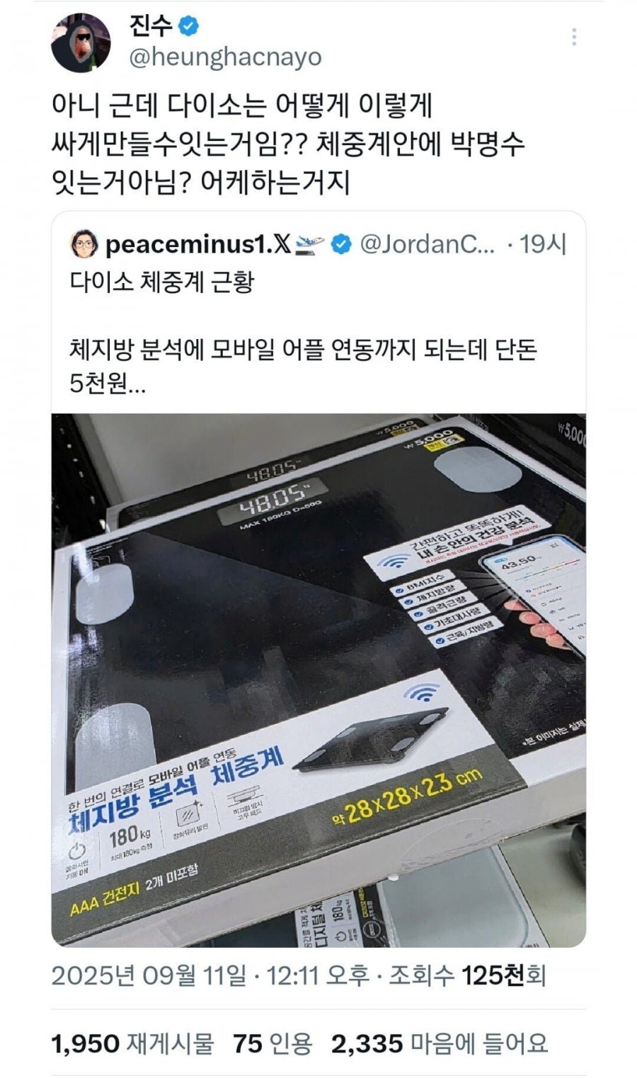 다이소의 체중계가 무려 5천원이라는 믿기지 않는 가격으로 출시되어 큰 화제를 모으고 있다. 이 체중계는 단순한 체중 측정에 그치지 않고, 체지방 분석과 모바일 어플 연동 기능까지 갖추고 있어, 마치 고급 헬스 기구를 손에 넣은 듯한 착각을 불러일으킨다. 이 제품은 단지 가볍고 편리할 뿐만 아니라, 사용자의 건강 지표를 스마트폰으로 쉽게 확인할 수 있도록 설계되었다.