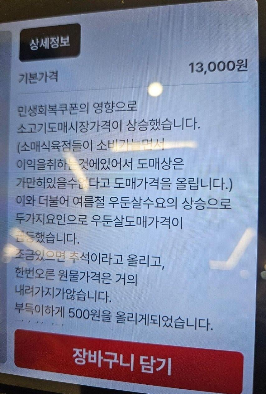 민생회복쿠폰 때문에 가격 올렸다는 자영업자.jpg