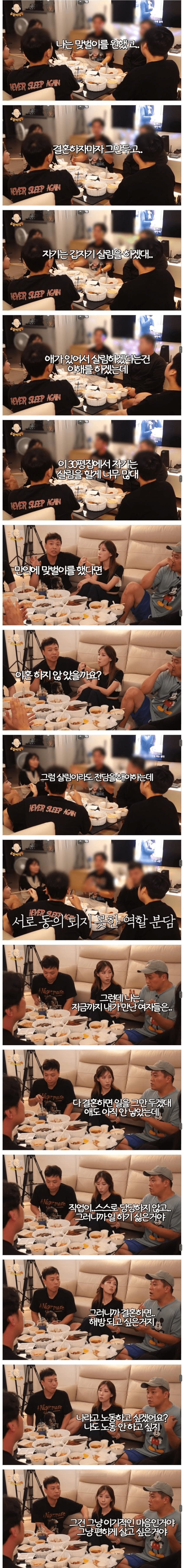 대화 속 한 화자의 발언은 남성의 자아정체성 문제를 건드린다. 노동으로 얻는 자긍심이 약해지면, 결혼을 통해 ‘해방’을 얻고 싶다는 식의 생각이 스며들 수 있다. 이는 개인의 욕망이 사회적 기대와 충돌할 때 나타나는 흔한 심리인데, 동시에 구조적 요인—직업 안정성, 성역할 고정관념—이 작용하는 방식이기도 하다.