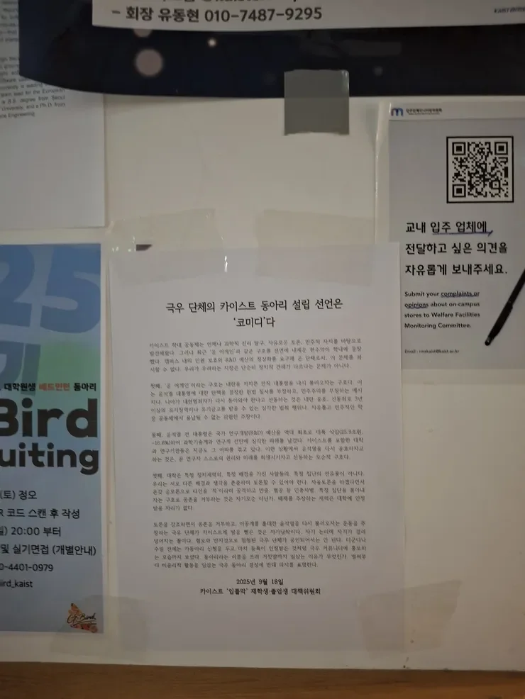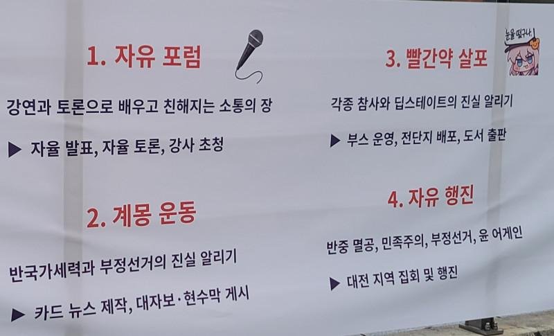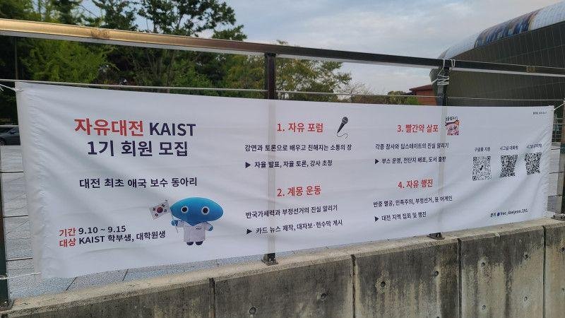 최근 KAIST의 한 모임으로 보이는 “자유대전 KAIST”가 동아리원 모집과 함께 오프라인 활동을 적극적으로 홍보하고 있다. 참고자료는 발췌된 기사 형식이라 맥락이 다소 단편적이지만, 이를 바탕으로 시청자에게 상황을 풀어 설명하면 캠퍼스 내 아이덴티티 전투의 현장을 조금은 읽어낼 수 있다.