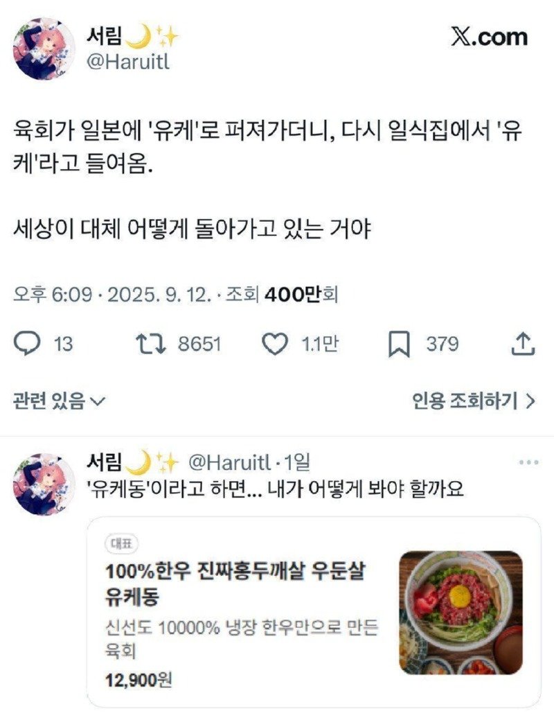 오늘 다룰 주제는 한 접시의 이름이 국경을 넘어 흐르는 방식이다. 한 트위터 글이 지적하듯, 한국의 육회가 일본에 ‘유케’로 퍼져가고, 다시 일식집에서 ‘유 케’로 들여오는 흐름이 화제가 된다. 이는 단순한 밈이 아니라, 언어와 식문화의 교류가 어떻게 현실의 메뉴와 소비자 인식에 영향을 주는지 보여주는 사례다.
