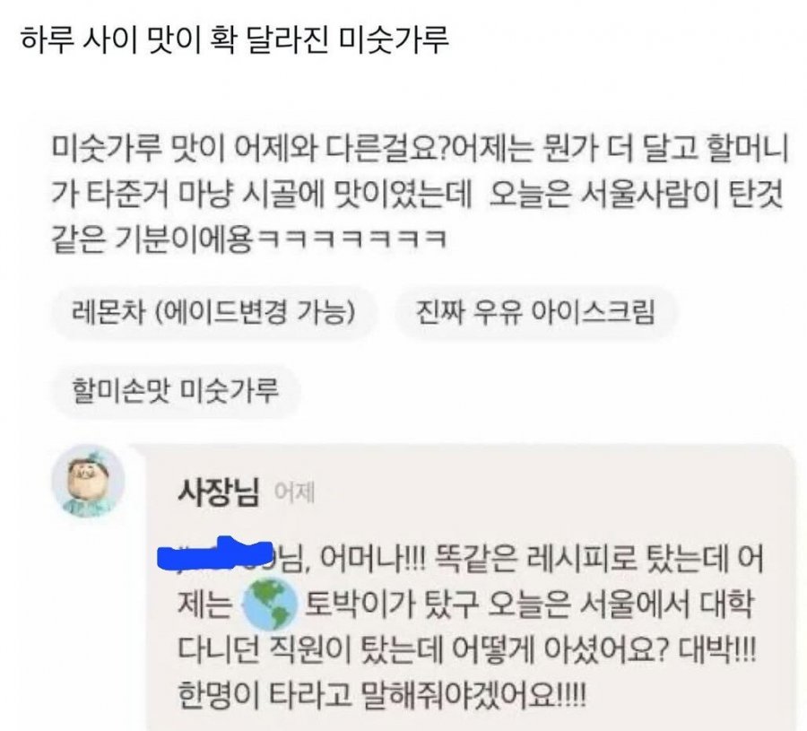 하루 사이 맛이 확 달라진 미숫가루라는 짤은, 표면적으로는 단순한 미각의 차이처럼 보이지만, 실제로는 생산 과정의 복합적 요인과 소비자 인식이 얽힌 현상이다. 같은 레시피로도 바뀐다고 느껴지는 순간은, 단순한 기호의 문제가 아니라 맛의 생성 과정을 둘러싼 여러 변수의 작용을 드러낸다.