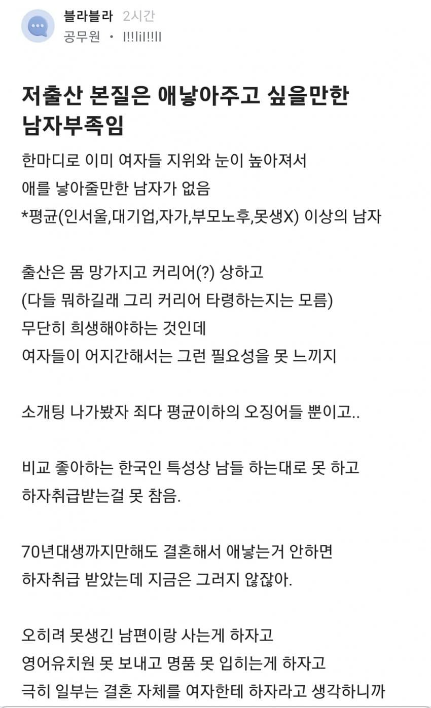 저출산의 진짜 본질ㄷㄷㄷ.blind