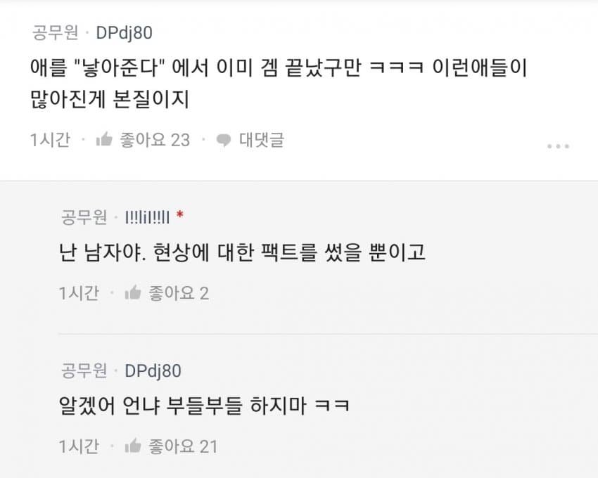이 논리는 남성을 ‘만나야 할 대상’으로 고정하고, 현실의 젠더 관계를 숫자와 조건으로 환원한다. 결국 아이를 낳는 동력이 개인의 선택이 아니라 사회적 신호에 달려 있다는 식으로 흐른다.
