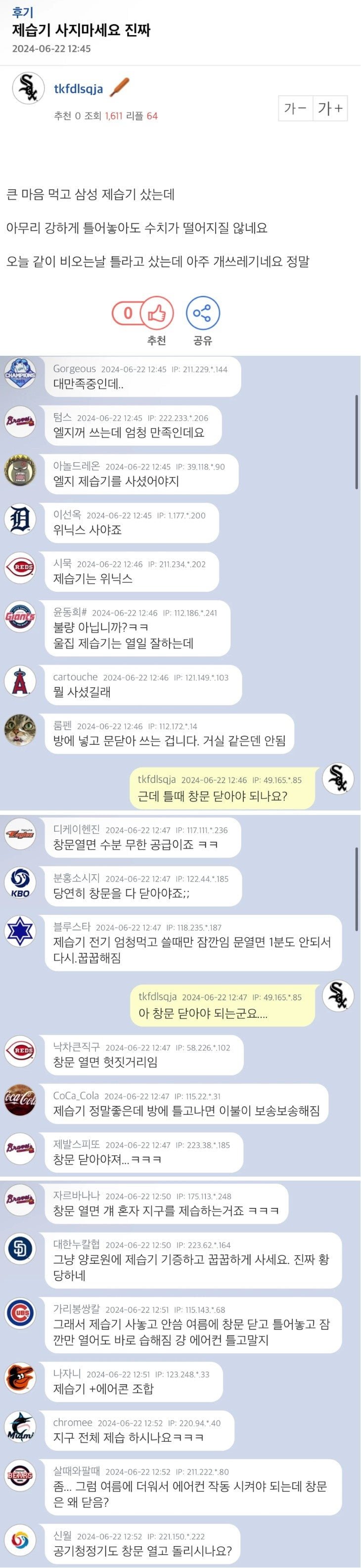 온라인 커뮤니티의 제습기 후기들은 한목소리로 갈리는 모습이 아니라 상반된 진술이 공존한다. 어떤 이들은 ‘제습기는 절대 사지 마라’고까지 말하지만, 다른 이들은 실제로 ‘대만족’을 표한다. 같은 사안에 대해 이렇게 극단적으로 다른 평가가 나타나는 이유를 먼저 짚고 넘어갈 필요가 있다.