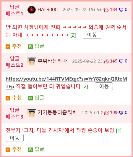 또한 이 에피소드를 통해 드러난 것은 리더의 접근성에 대한 두 가지 읽기입니다. 한쪽에선 전무님의 인간적이고 다정한 리더십을 긍정적으로 보지만, 다른 한쪽에선 그렇게 쉽게 가족의 취향이나 요청이 수용될 수 있는 시스템의 취약점을 걱정하게 만듭니다. 이처럼 리더십의 문턱을 낮추는 매력이 있을 수 있지만, 전반적 신뢰성과 절차의 일관성을 해치지 않는 선에서의 조율이 필요합니다.