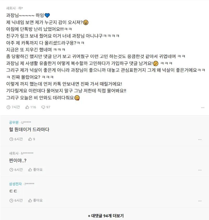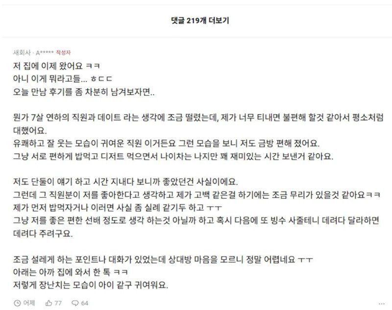 이번 글은 한 익명 커뮤니티에 유출된 직장인 사생활 발화의 맥락을 정리해보는 해설이다. 핵심은 “밥 먹자”는 사적 제안과, 이를 둘러싼 배경·의미·파장을 어떻게 읽느냐다. 남성 상사와 7살 연하의 여성 직원 사이에서 벌어진 신호와 의도는, 온라인에 퍼지며 즉시 공공의 관심사로 바뀌었다.