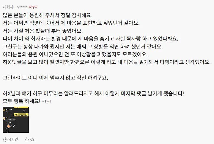 또 다른 축은 익명성의 효과다. 블라인드 같은 플랫폼은 개인의 미세한 신호를 대중 앞에 노출시키고, 그것이 곧 공적인 담론으로 흘러간다. 다수의 댓글은 응원과 용기를 주는 분위기일 수 있지만, 동시에 상황 판단의 책임을 양측 모두에게 떠넘기고 있다. 가용한 정보가 부족한 상태에서 대중은 자기 나름의 해석 프레임을 더해가며, 사실 여부를 떠나서도 “그럴 수도 있다, 아닐 수도 있다”는 가설들을 만들어낸다.