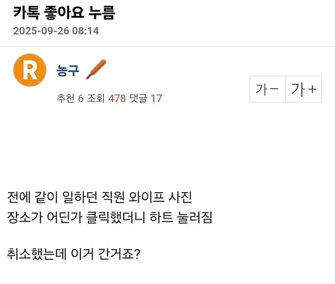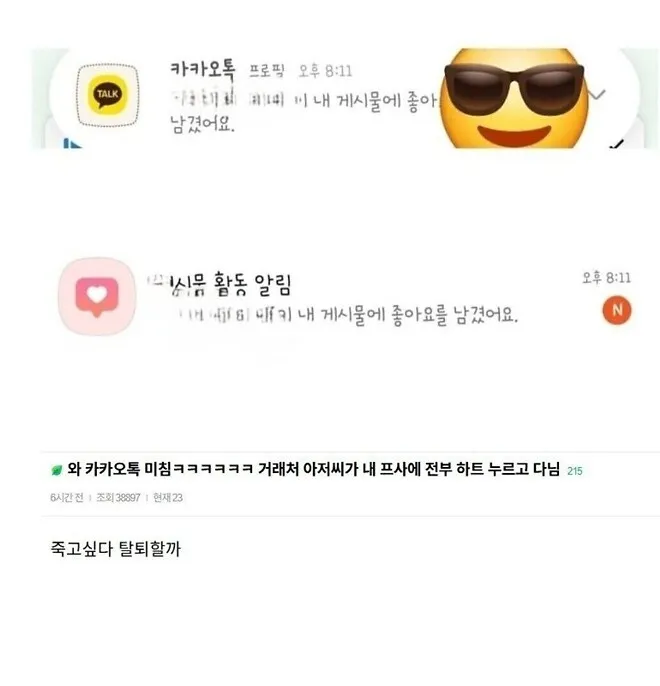 오늘의 참고자료는 카카오톡의 아주 평범한 ‘좋아요’ 행위가 직장 내 관계의 균형을 어떻게 흔들 수 있는지 보여주는 사례다. 사진 프사에 대한 관심이 개인의 사적 공간에까지 파고드는 디지털 신호의 문제점을 드러낸다.