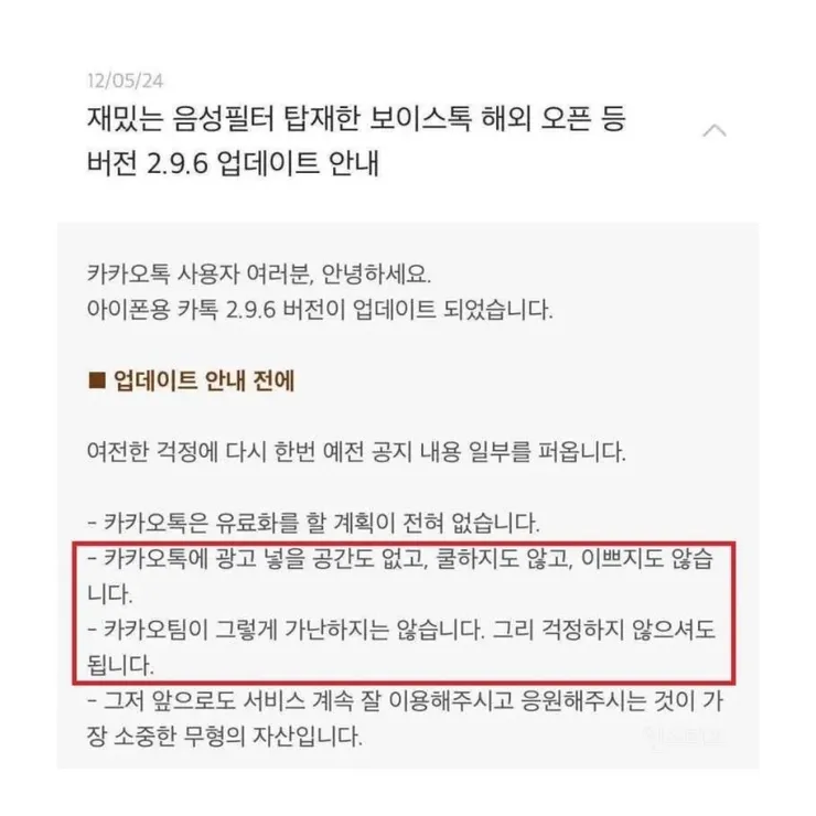 이번 업데이트에서 가장 눈에 띄는 것은, 회사가 강조하는 유료화 금지 입장과 광고 정책에 대한 재확인이다. “유료화는 계획이 없다”는 메시지와 “광고 공간도 없다”는 발언은, 그동안 플랫폼이 광고나 과도한 수익화로 흐를 가능성을 차단하려는 의도로 읽힌다. 사용자의 불안을 차단하려는 PR 의도가 분명해 보인다.