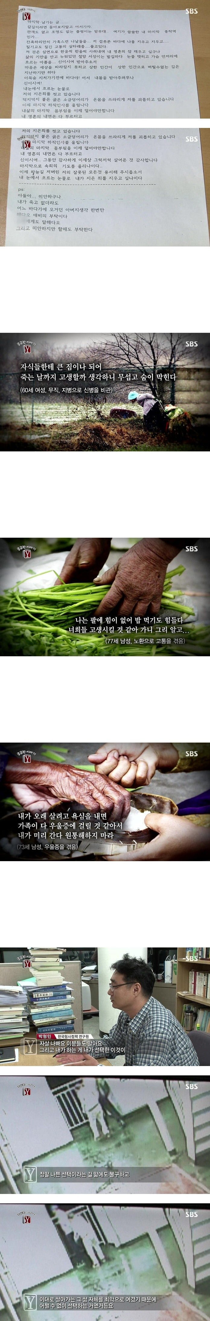 스스로 목숨을 끊은 노인분들의 유서