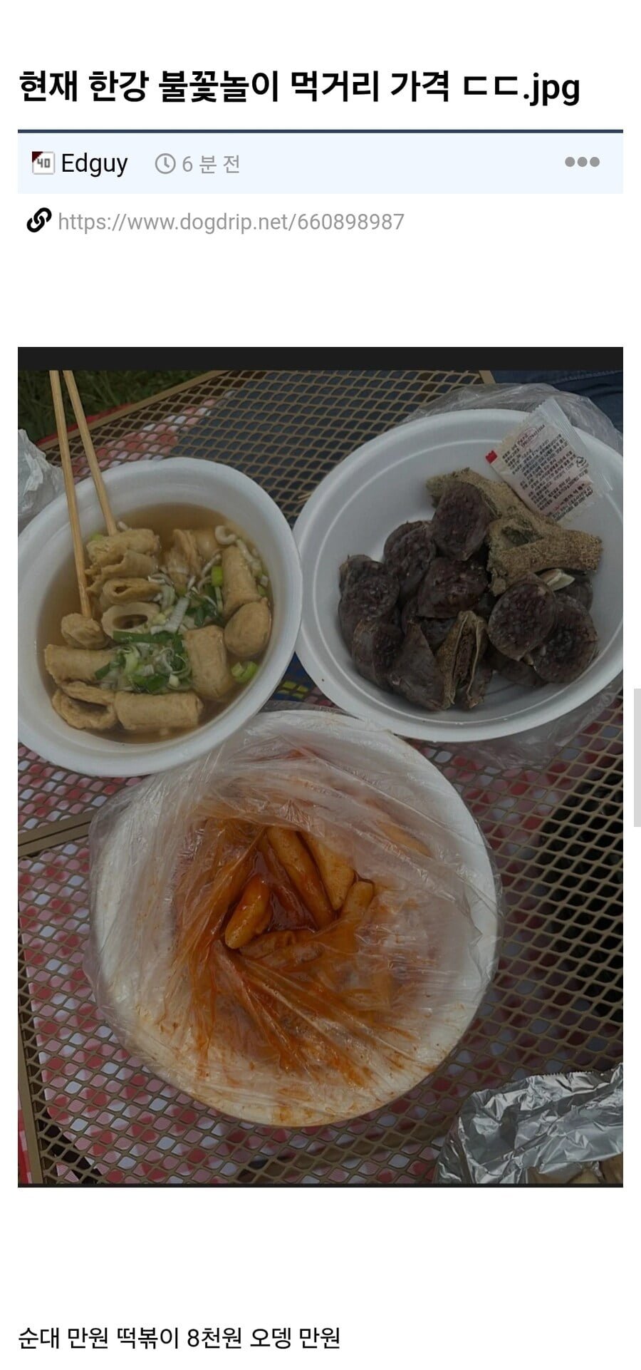 현재 한강 불꽃놀이 먹거리 가격 ㄷㄷ..jpg