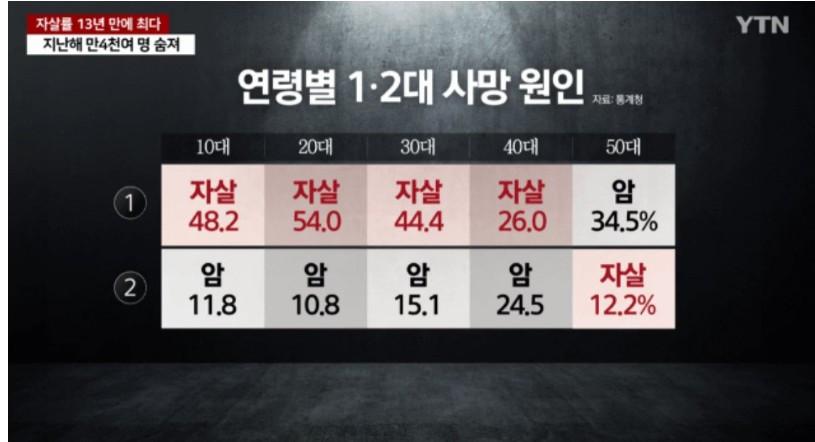 40대 최다 사망 원인 1위가 처음으로 바뀜...