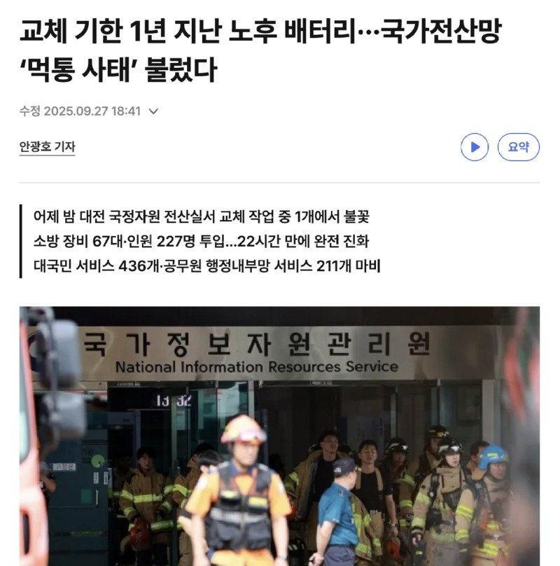 요즘처럼 디지털 서비스가 우리의 일상에 스며든 시대에, 작은 배터리 하나가 큰 차이를 만든다 해도 놀라지 않는다. 대전의 국정자원 전산실에서 배터리 교체 작업 중 불꽃이 일어나며 소방 장비 67대, 인원 227명이 투입됐고 22시간 만에 진화했다.