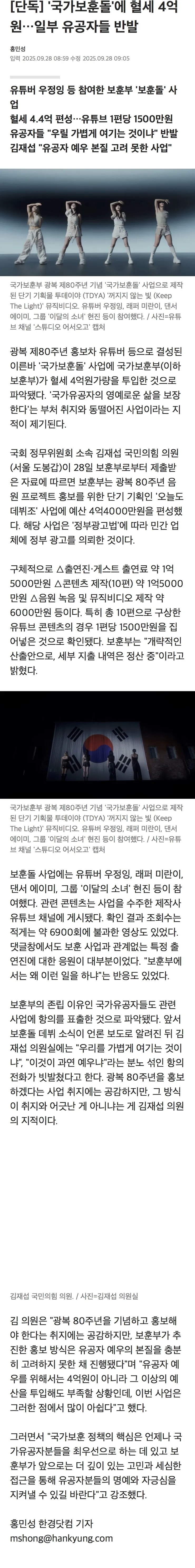 혈세 4억 들여 '보훈아이돌'...일명 보훈돌