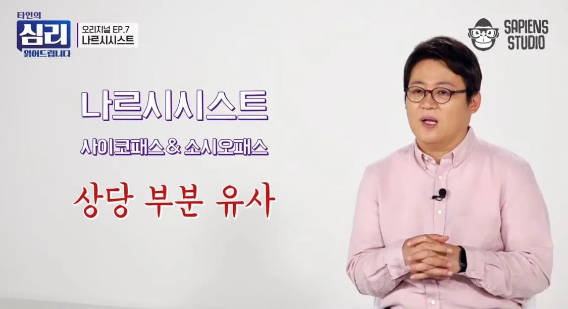 싸패 쏘패는 그런 성향이 심하게 나타나면 범죄를 저질러서 격리될 확률이 높지만 나르시시트는 범죄 직전에 늘 멈춰 있기 때문에 주변에서 만날 확률이 높다는 거