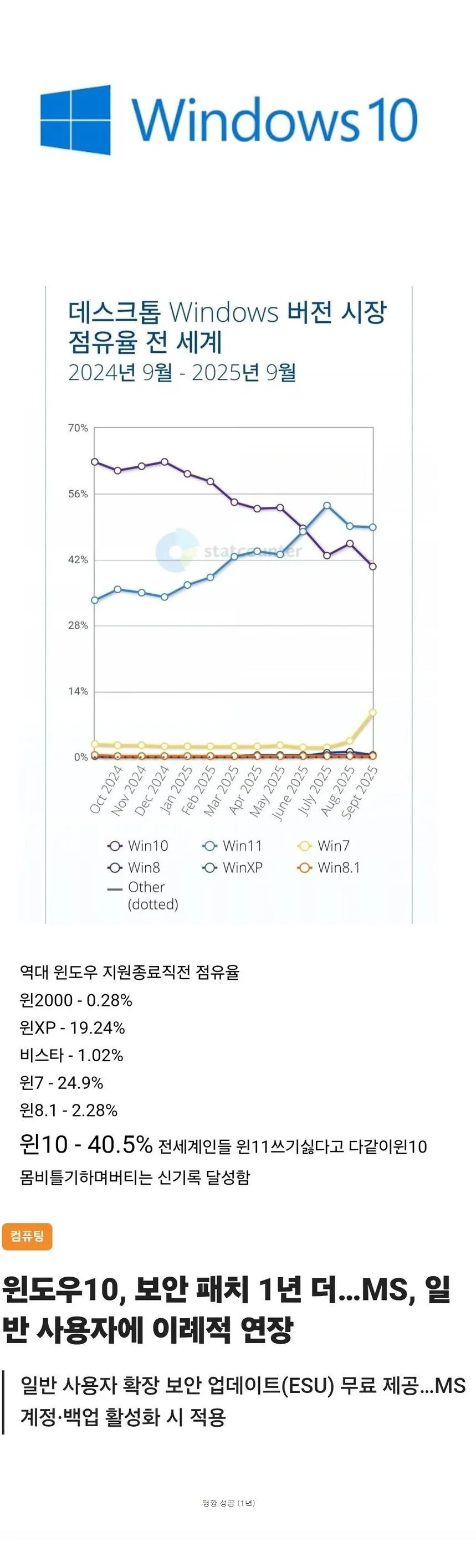 오늘의 시사 이야기는 우리가 매일 쓰는 PC OS의 흐름에 관한 것이다. 글로벌 시장의 흐름을 보면 Windows 10이 여전히 압도적으로 강세를 보이고, Windows 11의 도입은 생각보다 더딘 편이다.
