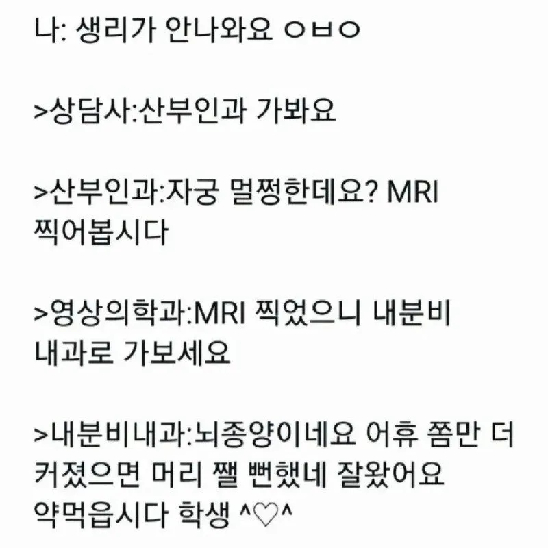 생리 불순으로 시작된 한 사례를 떠올리면, 진료 현장의 길찾기가 생각보다 헷갈린다는 점이 먼저 떠오른다. 처음엔 산부인과에서 자궁은 멀쩡하다고 듣고, 더 자세히 보자며 MRI를 권한다. MRI 결과를 보고서는 영상의학과의 '다음은 내분비인가?'라는 묘한 연결고리가 생겨난다. 이처럼 한 가지 증상에서 의사들은 서로 다른 영역으로 경로를 옮겨가며, 환자는 무작정 따라가야 한다는 느낌이 든다.