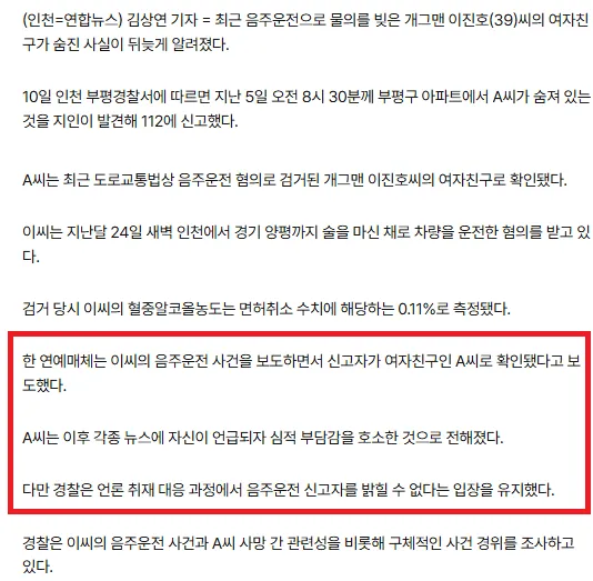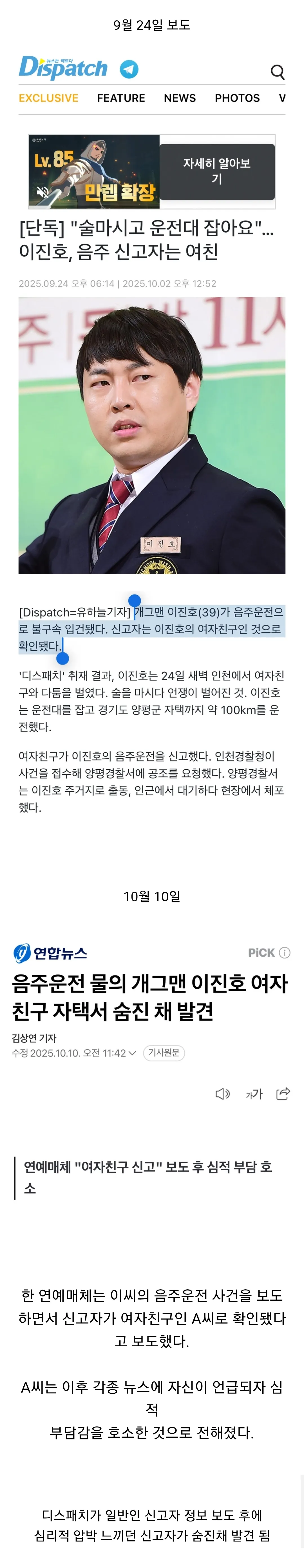 경찰이 밝히지않겠다던 이진호 음주운전 신고자 신원을 보도한 디스패치