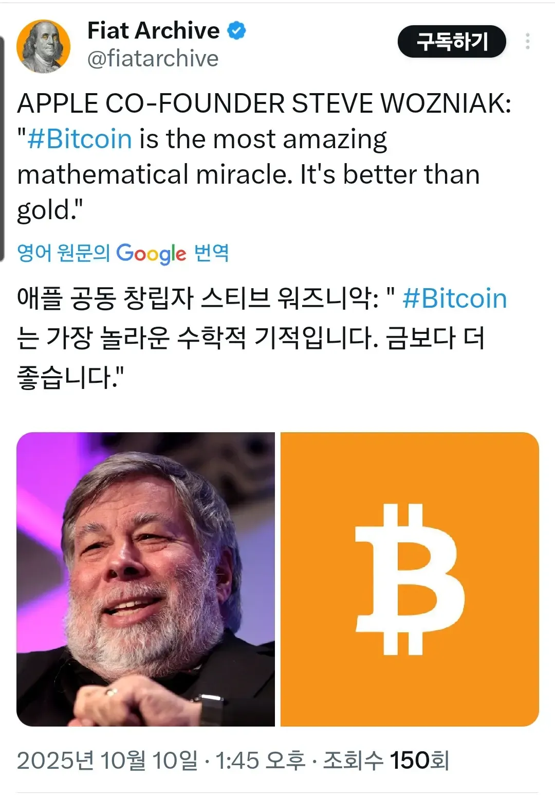 애플 공동 창업자: 비트코인은 수학적 기적