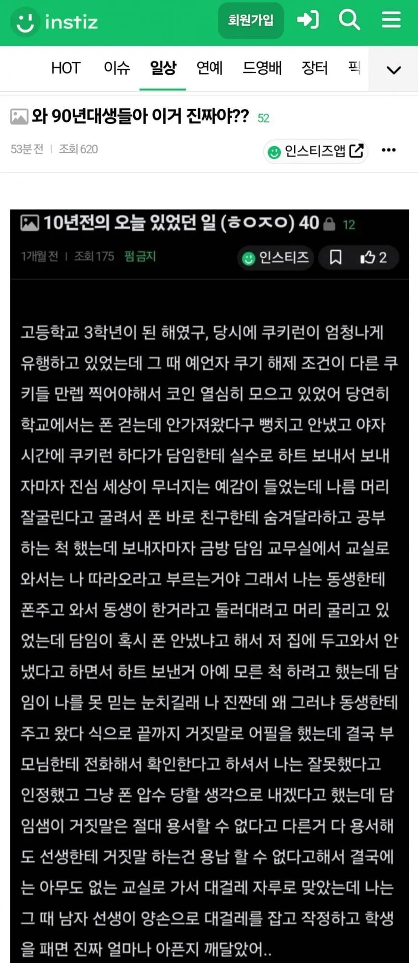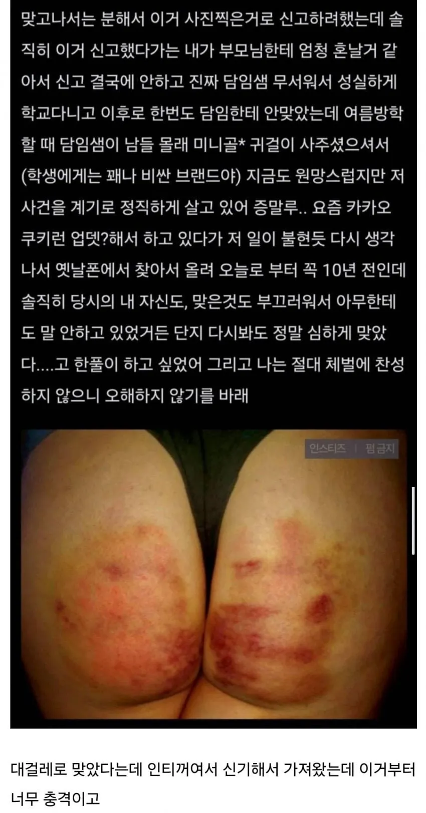 요즘 인터넷에서 떠도는 '90년생 체벌에 충격받은 00년생.jpg' 이야기가 화제다. 이건 사실 여부를 떠나서 맥락을 살펴보게 만드는 단서 같아, 학교 문화의 한 페이지처럼. 폰을 숨겨 두고 수업에 임한다던 학생, 담임 선생님이 대걸레 자루로 체벌했다는 기억 같은 이야기가 마치 시간여행처럼 다가오거든. 결국은 ‘그 시절 교실은 지금과 다를 수밖에 없었다’는 한 줄의 해석으로 끝나지 않는 여운을 남겨줘.