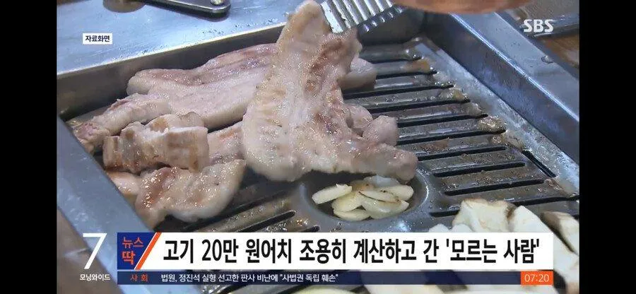 2) 중년 남성 분이 스윽 보더니 몰래 그 고기값을 결제함