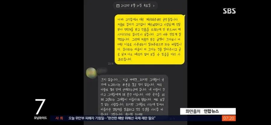 3) 군인들이 감사인사를 전하려고 했지만, 연락이 되지 않아 카톡을 남김