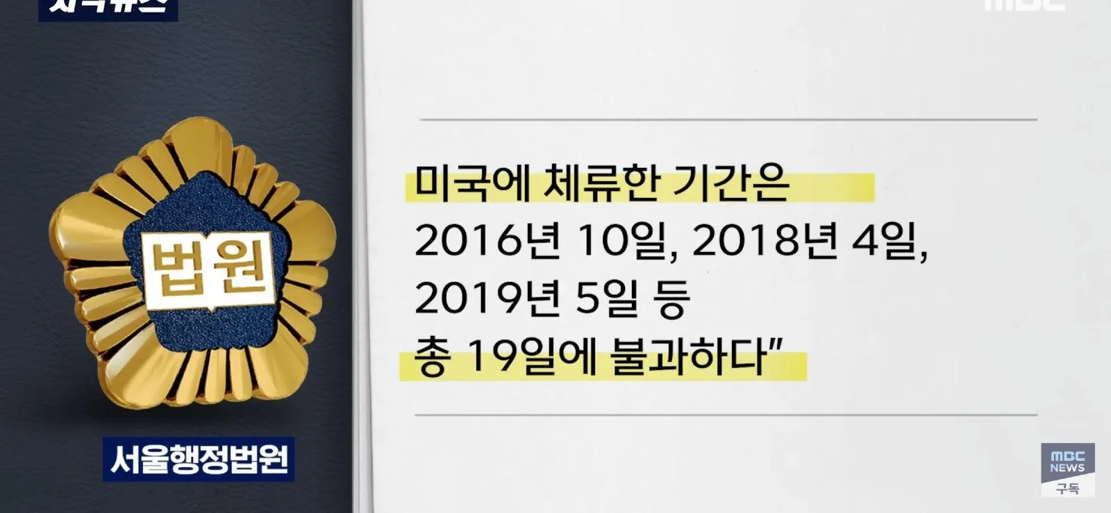 생활 근거는 한국에 있으면서 (미국에 19일 거주)
