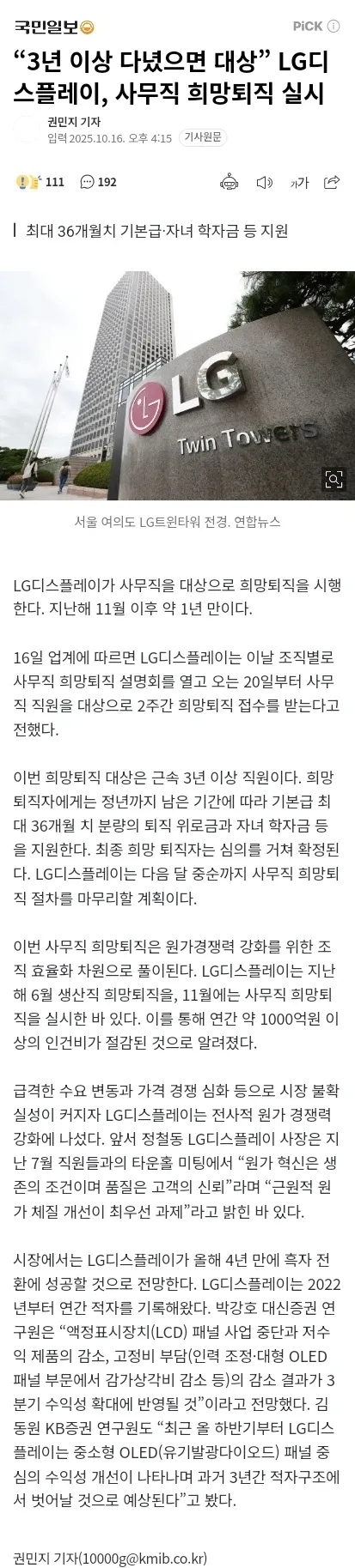 요즘 대기업들 사이에서 '희망퇴직'이라는 단어가 커피 타임의 핫 이슈로 떠올랐어요. LG디스플레이가 사무직을 대상으로 3년 이상 다닌 이들을 대상으로 희망퇴직을 받는다고 들었거든요. 퇴직위로금이 최대 36개월치 기본급에 자녀 학자금까지 포함된다니, 이게 무슨 원가혁신의 카드인지 궁금증이 샘솟습니다. 아직 확정은 아니라서, 설명회가 남아 있고 절차도 남아 있다는데, 이 소문이 빠르게 퍼지는 걸 보면 뭔가 큰 그림이 있는 건가 싶어요.