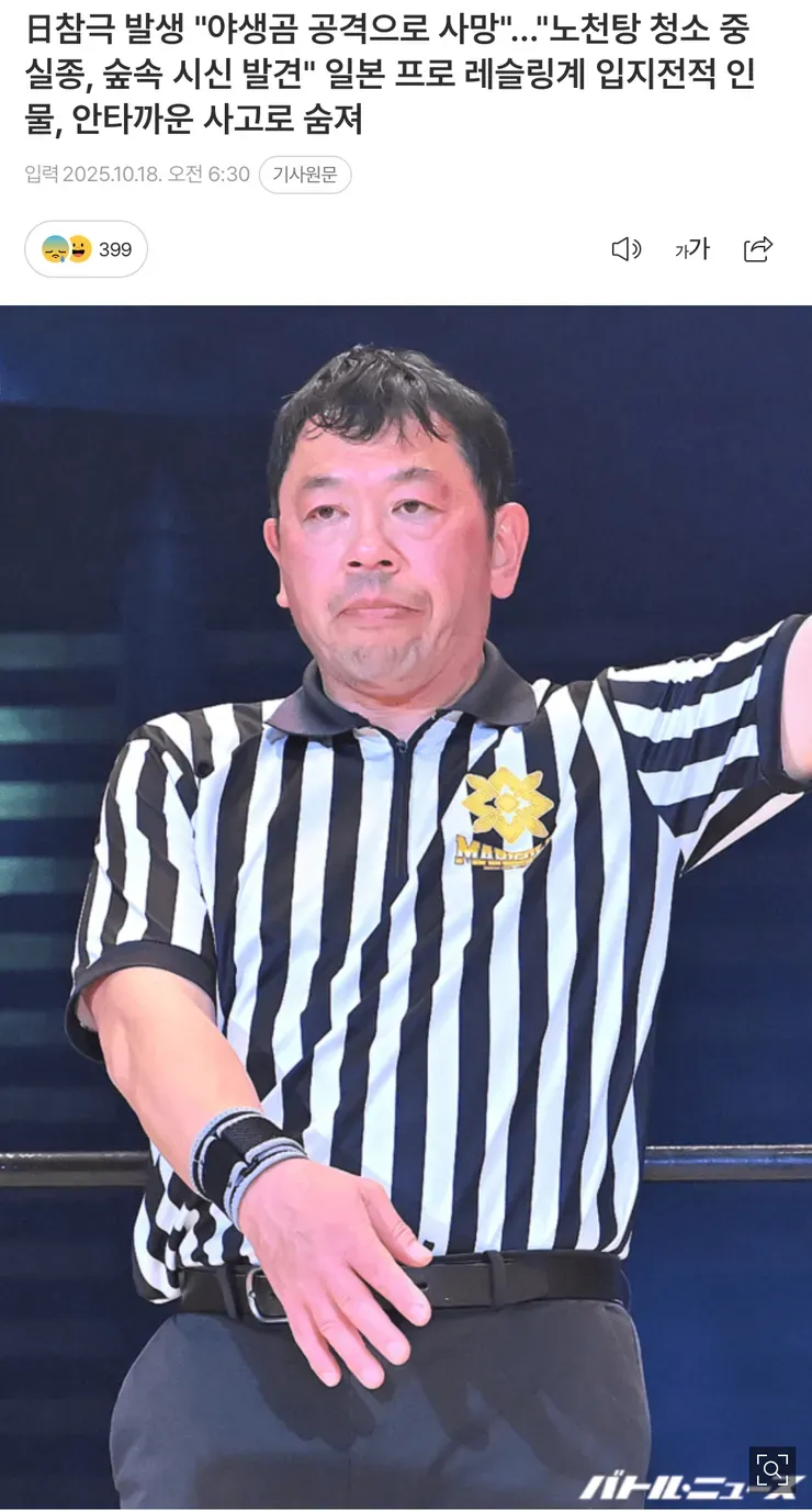 日참극 발생 '야생곰 공격으로 사망'...'노천탕 청소 중 실종, 숲속 시신 발견'