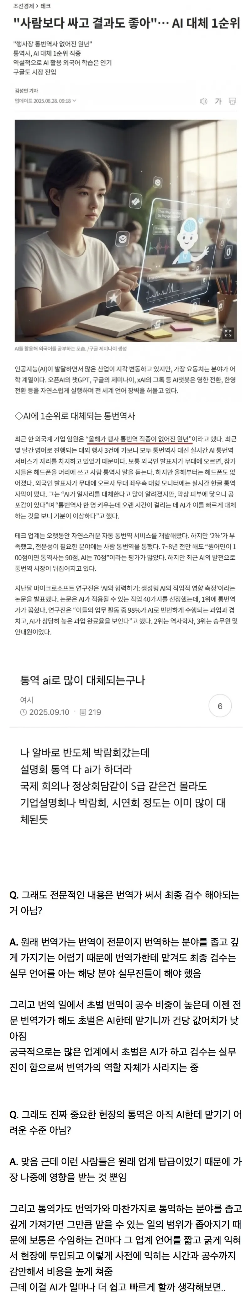 요즘 행사 현장을 가면, 사람 대신 AI가 통역을 맡는 광경이 흔해졌다. 실시간 통번역 서비스가 자리를 확실히 차지해, 무대 양쪽의 스크린에 한글 자막이 번쩍인다. 언어의 벽은 아직 남아 있지만, 그 벽을 허물려는 움직임은 멈추지 않는다. 이 흐름은 바로 AI 대체 통번역사 시대의 서막일지도 모른다.