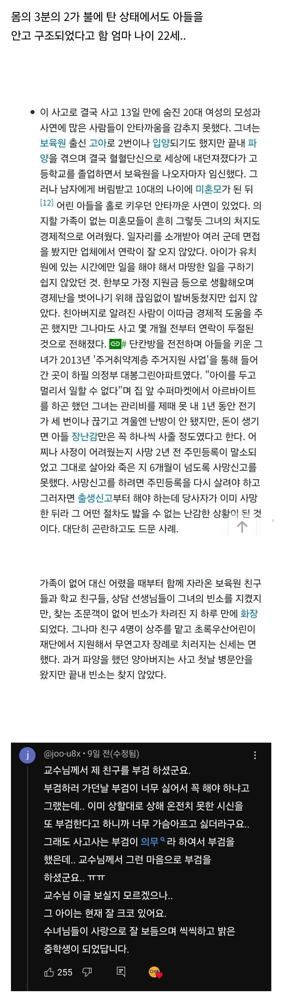 20대 미혼모의 죽음