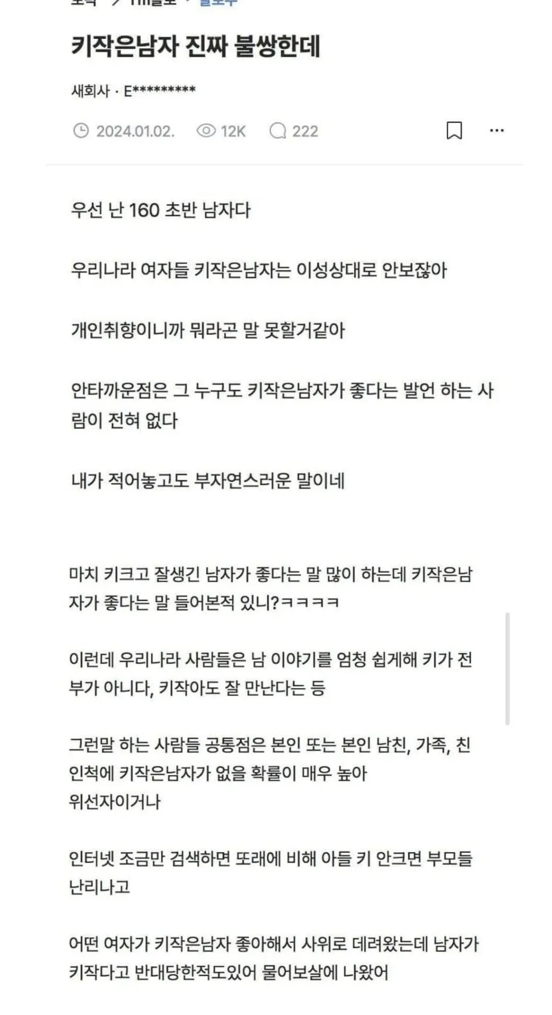 키작남이 말하는 연애와 결혼