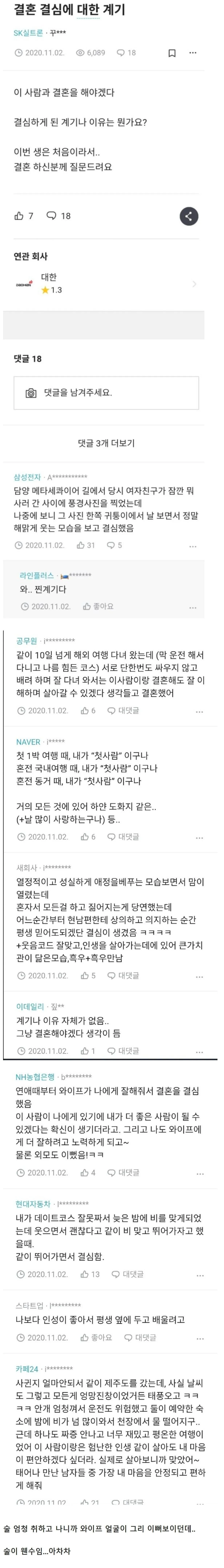 결혼을 결심하게 된 계기