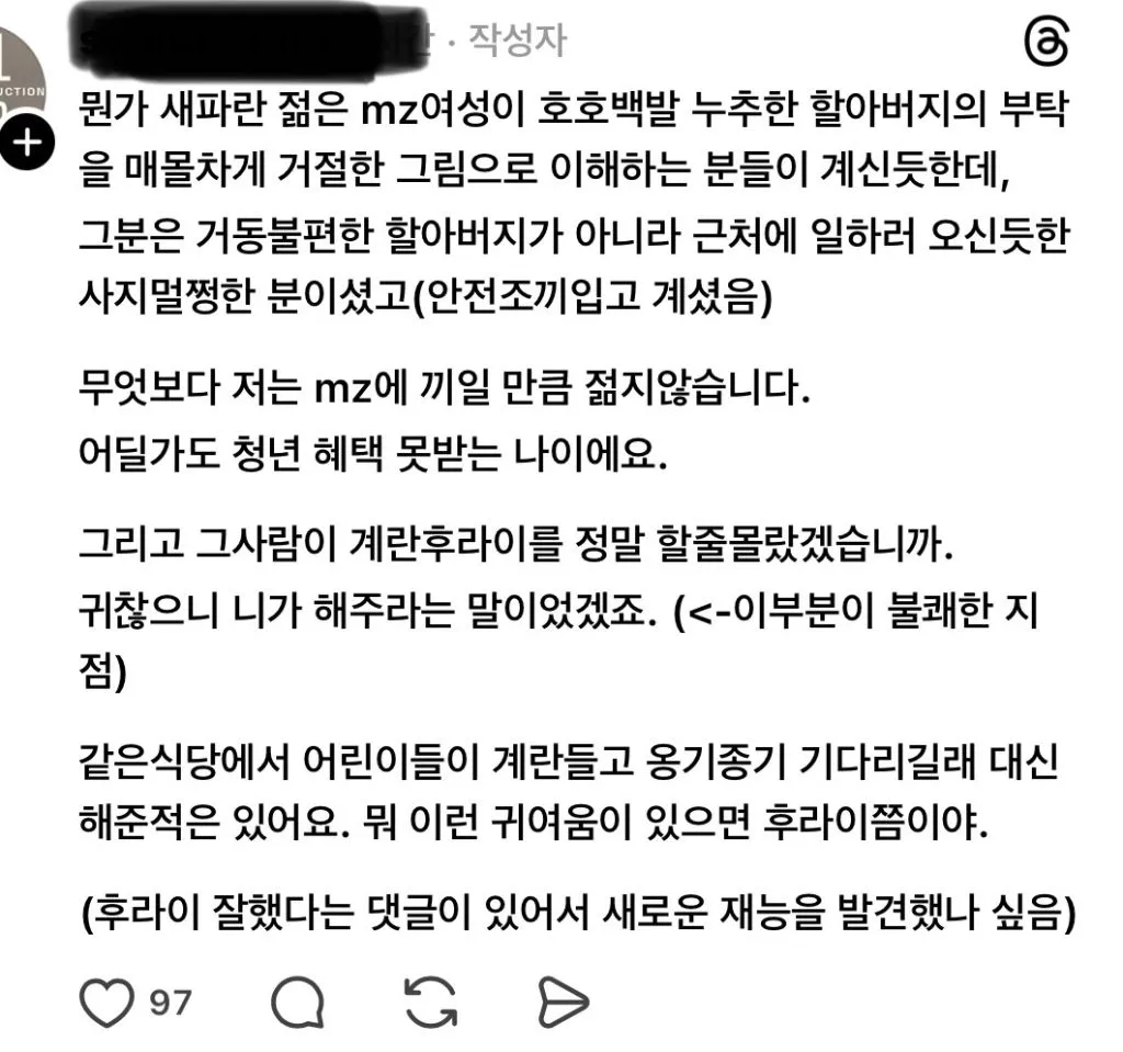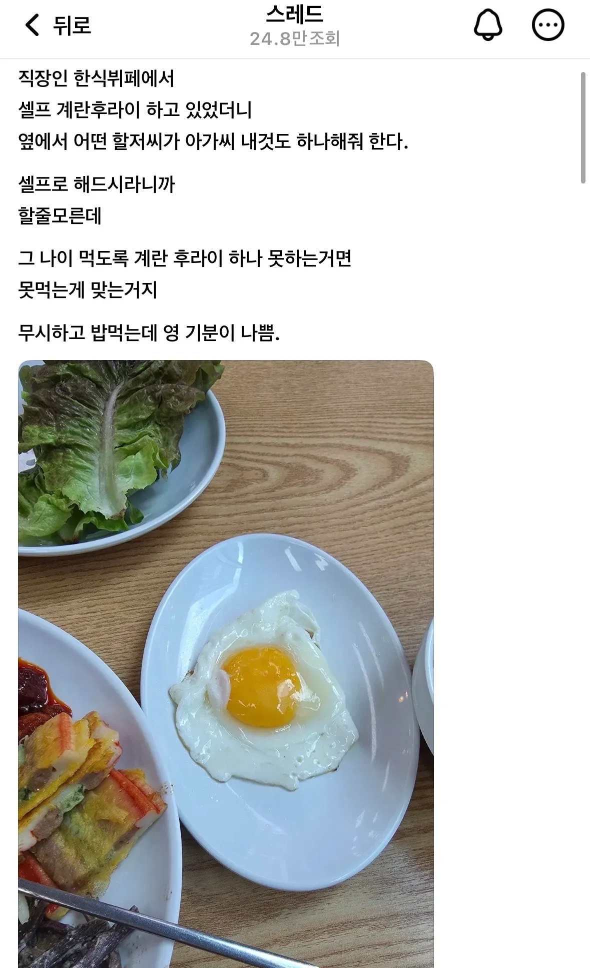 계란후라이 셀프 코너에서 "아가씨 내꺼도 하나해줘" 논란
