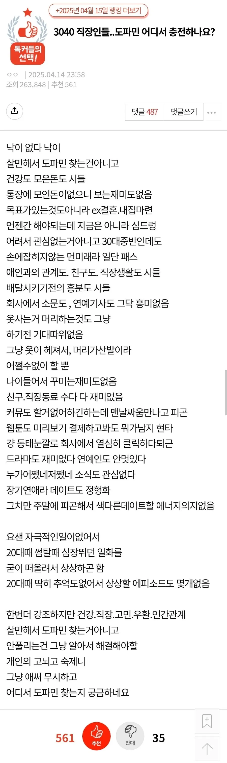 3040 직장인들.. 도파민 어디서 충전하나요?