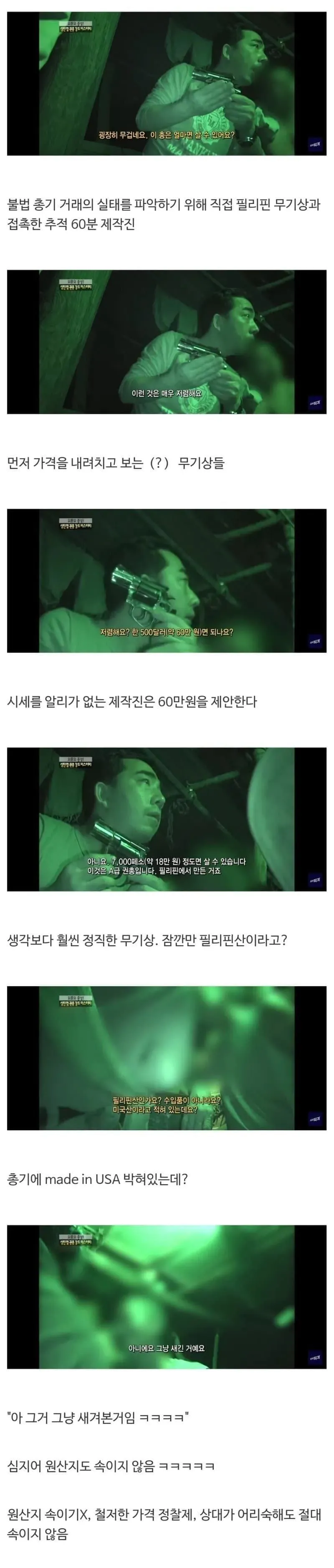 배경은 이렇다. 추적 60분 제작진이 필리핀 무기상과 대화를 시도해, 물건의 가치를 어떻게 평가하는지 직접 확인하려 애썼다. 가격은 공개되기 전에 먼저 내려앉는 경우가 많았고, 상대방의 직감에 기대는 속성도 보였다. 심지어 'A급'이라는 표현과 함께 원산지 표기가 얽히는 모습도 포착되었다. 그렇다고 이 모든 게 다 소설처럼 들리는 건 아니다.