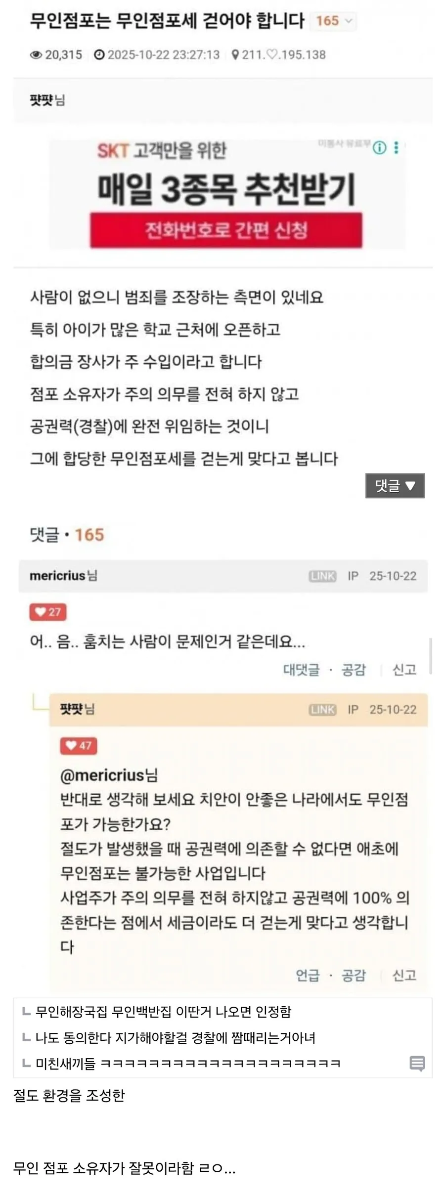 무인점포 논란 아시가루 쪽지보내기자기소개아이디로 검색전체게시물 10-25 1,891 회 0 건 ruliweb 요즘 무인점포가 도시를 휩쓴다고 해도 과언이 아니에요. 기사에서 발췌된 짧은 문장들을 떠올리면, 사람은 없는데 안전은 과연 괜찮을까 하는 우려가 먼저 떠오르죠. 특히 학교 근처에 무인점포가 생겼다는 소식은 이게 정말로 지역 사회에 어떤 영향을 끼칠지 상상하게 만듭니다. 이 흐름의 결은 아직 잘려 있지 않아서, 오늘은 두근두근 맥락 탐험을 시작합니다. 목록 이메일 주소는 공개되지 않습니다. 댓글 * 이름 * 비밀번호 * 비밀글 사용 제목 글쓴이 조회 날짜 토크쇼에서 무쌍찍는 단타의 신.jpg 세계는지금 쪽지보내기자기소개아이디로 검색전체게시물 1,956 0 25-10-27 세계는지금 쪽지보내기자기소개아이디로 검색전체게시물 1,956 25-10-27 스토커로부터 구해달라고 했을때 시민들 반응.jpg 황희림 쪽지보내기자기소개아이디로 검색전체게시물 1,803 0 25-10-27 황희림 쪽지보내기자기소개아이디로 검색전체게시물 1,803 25-10-27 어느 피부과 의사의 충고. 얼음사이다 쪽지보내기자기소개아이디로 검색전체게시물 2,001 0 25-10-27 얼음사이다 쪽지보내기자기소개아이디로 검색전체게시물 2,001 25-10-27 2030 한국 남자들 ㅈ된 이유.jpg 하선훈 쪽지보내기자기소개아이디로 검색전체게시물 2,020 0 25-10-27 하선훈 쪽지보내기자기소개아이디로 검색전체게시물 2,020 25-10-27 PC방 요식업자가 괴로운 이유 옆집총각 쪽지보내기자기소개아이디로 검색전체게시물 1,959 0 25-10-27 옆집총각 쪽지보내기자기소개아이디로 검색전체게시물 1,959 25-10-27 요즘들어 늘고 있다는 공원 민폐.jpg 차하영 쪽지보내기자기소개아이디로 검색전체게시물 2,022 0 25-10-27 차하영 쪽지보내기자기소개아이디로 검색전체게시물 2,022 25-10-27 심각한 자살률 근황.jpg 달콤별 쪽지보내기자기소개아이디로 검색전체게시물 1,934 0 25-10-27 달콤별 쪽지보내기자기소개아이디로 검색전체게시물 1,934 25-10-27 대놓고 배꼈다가 걸린 파리바게트 지니까꿍 쪽지보내기자기소개아이디로 검색전체게시물 2,157 0 25-10-26 지니까꿍 쪽지보내기자기소개아이디로 검색전체게시물 2,157 25-10-26 똑같은 자격증 3번이나 취득한 사람 황희림 쪽지보내기자기소개아이디로 검색전체게시물 2,074 0 25-10-26 황희림 쪽지보내기자기소개아이디로 검색전체게시물 2,074 25-10-26 수학여행가서 선생님에게 감귤소주 사달라는 학생 지니까꿍 쪽지보내기자기소개아이디로 검색전체게시물 2,023 0 25-10-26 지니까꿍 쪽지보내기자기소개아이디로 검색전체게시물 2,023 25-10-26 소녀시대 멤버들은 결혼 안한 거 굉장히 후회할듯 도레미 쪽지보내기자기소개아이디로 검색전체게시물 2,051 0 25-10-26 도레미 쪽지보내기자기소개아이디로 검색전체게시물 2,051 25-10-26 10년간 800억 혈세를 들여서 만든 것 신림사 쪽지보내기자기소개아이디로 검색전체게시물 1,880 0 25-10-26 신림사 쪽지보내기자기소개아이디로 검색전체게시물 1,880 25-10-26 충격적인 캄보디아 여자 조직원 정체 모카크림 쪽지보내기자기소개아이디로 검색전체게시물 2,386 0 25-10-26 모카크림 쪽지보내기자기소개아이디로 검색전체게시물 2,386 25-10-26 과학적으로 입증된 사실 차하영 쪽지보내기자기소개아이디로 검색전체게시물 2,114 0 25-10-26 차하영 쪽지보내기자기소개아이디로 검색전체게시물 2,114 25-10-26 캄보디아 재판 근황ㄷㄷ.jpg 차하영 쪽지보내기자기소개아이디로 검색전체게시물 2,654 0 25-10-26 차하영 쪽지보내기자기소개아이디로 검색전체게시물 2,654 25-10-26 건달 유튜버 칼부림 사건 차하영 쪽지보내기자기소개아이디로 검색전체게시물 2,978 0 25-10-25 차하영 쪽지보내기자기소개아이디로 검색전체게시물 2,978 25-10-25 12년간 아침마당을 진행했던 진행자의 하루 일과 달콤별 쪽지보내기자기소개아이디로 검색전체게시물 2,937 0 25-10-25 달콤별 쪽지보내기자기소개아이디로 검색전체게시물 2,937 25-10-25 선생님이 치킨을 사줘야 한다는 초2 제자 얼음사이다 쪽지보내기자기소개아이디로 검색전체게시물 3,012 0 25-10-25 얼음사이다 쪽지보내기자기소개아이디로 검색전체게시물 3,012 25-10-25 대한 축구협회 법적대응 경고 세계는지금 쪽지보내기자기소개아이디로 검색전체게시물 2,883 0 25-10-25 세계는지금 쪽지보내기자기소개아이디로 검색전체게시물 2,883 25-10-25 축구 하다가 욕했다고 학폭 처분.jpg 백림 쪽지보내기자기소개아이디로 검색전체게시물 2,821 0 25-10-25 백림 쪽지보내기자기소개아이디로 검색전체게시물 2,821 25-10-25 ⭐ 무인점포 논란 아시가루 쪽지보내기자기소개아이디로 검색전체게시물 1,892 0 25-10-25 아시가루 쪽지보내기자기소개아이디로 검색전체게시물 1,892 25-10-25 레딧에 올라온 다이소 외국인 후기 도레미 쪽지보내기자기소개아이디로 검색전체게시물 2,165 0 25-10-25 도레미 쪽지보내기자기소개아이디로 검색전체게시물 2,165 25-10-25 끝없이 돈만 요구하는 부모가 고민 도레미 쪽지보내기자기소개아이디로 검색전체게시물 2,038 0 25-10-25 도레미 쪽지보내기자기소개아이디로 검색전체게시물 2,038 25-10-25 어지간한 폰팔이보다 나은 밀매업자 황희림 쪽지보내기